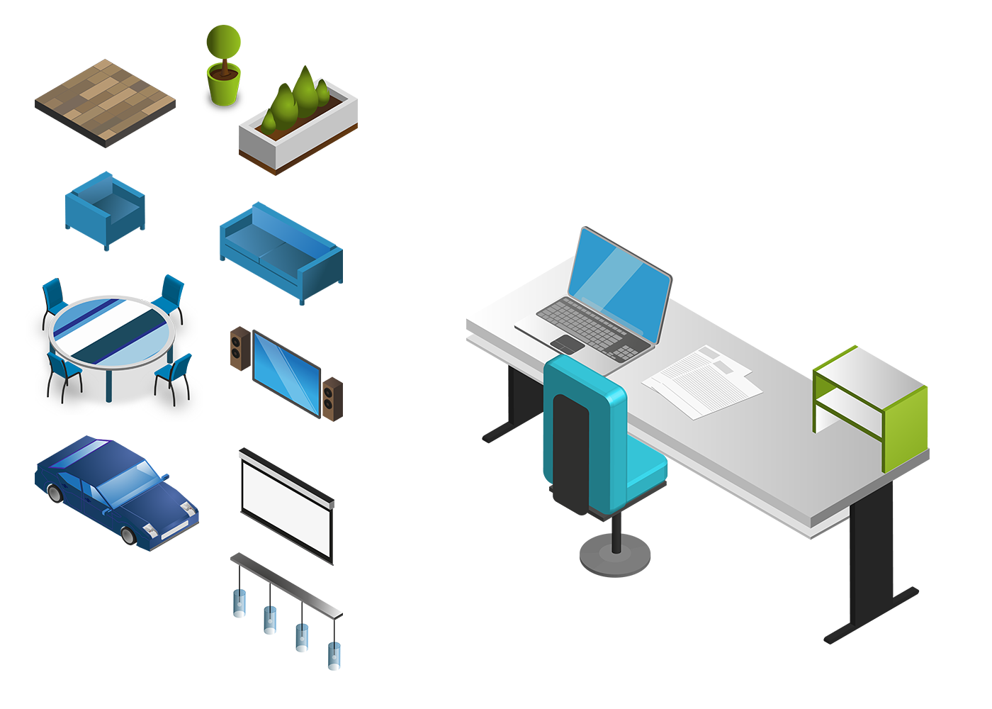Création mobilier 3D isométrique // Ai